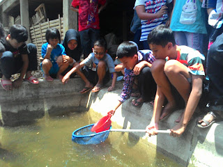 Kami menebar 200 benih ikan lele lhooo! Selain menebar benih ikan di kolam yang telah kami buat, kami juga belajar mengenali perbedaan ikan jantan dan betina, bagaimana cara merawat ikan, dan apa saja bentuk pemanfaatan ikan lele.